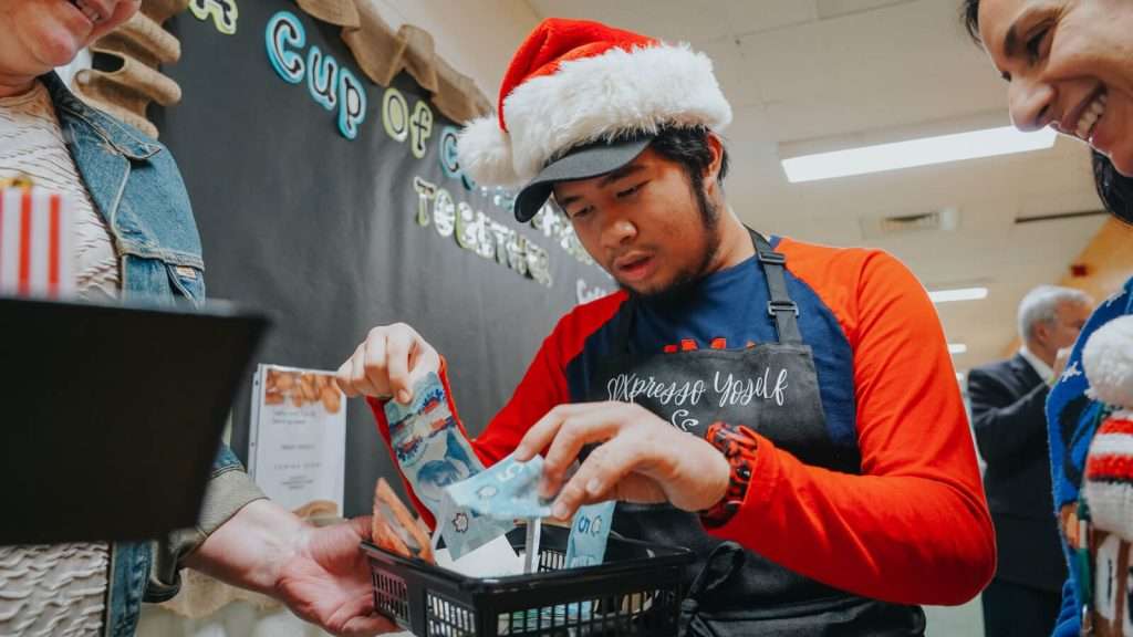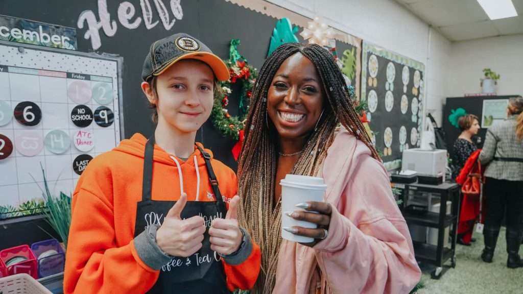 Stacey made her second stop in the world of SEP at the cozy and welcoming SPXpresso café run by Jennifer Currie’s inclusion students. The café is an ideal location for inclusion students to learn basic business skills, such as preparing orders, handling payments, giving change, and delivering orders throughout the school. After presenting to the students and their SEP mentors, Stacey had the chance to walk around the cafe and observe the students’ work while having one-on-one conversations with them.
