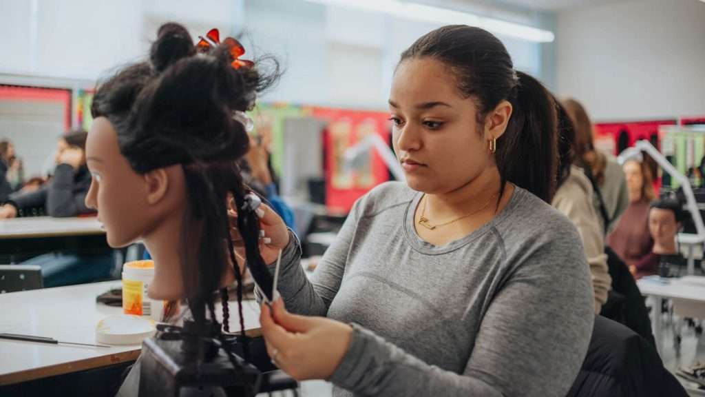 Stacey was treated to a vibrant and colourful hairdressing and lash class filled with cosmetology mannequins, hair brushes, lashes, and products when she entered the salon Pius on Point.