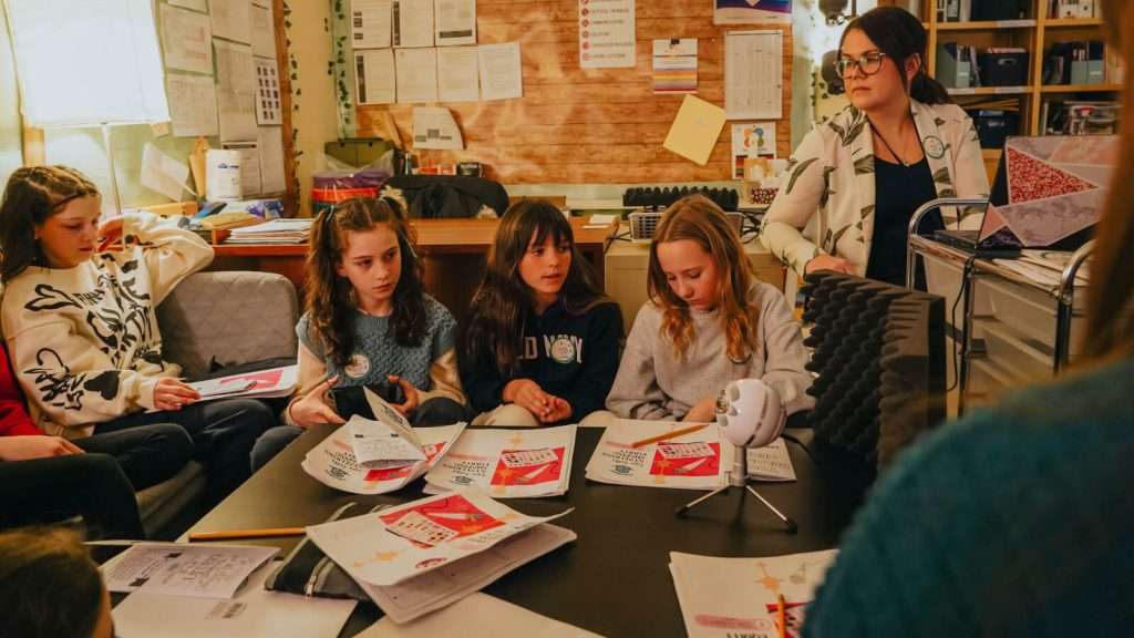 The podcasting process is a collaborative effort. Students and their educators meet once or twice weekly during lunch breaks to engage in open and honest discussions. These dialogues are not just conversations but learning experiences for students and teachers, fostering a culture of empathy and understanding. The conversations are then edited by educator Melissa into concise episodes of 15-20 minutes, making them accessible online, involving parents and the community, and offering a platform for them to engage with the school through the website. This approach creates a safe and nurturing environment for the Grade 6 students, facilitating open discussions on various subjects and enabling them to assume meaningful leadership roles as they prepare for their transition to high school.