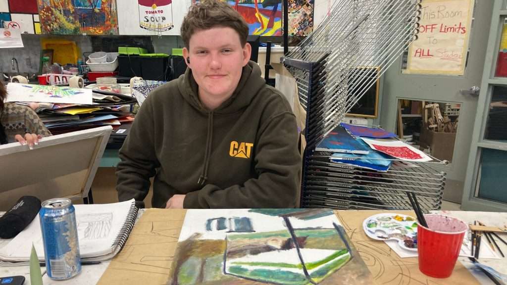 Guided by artist Max Black, students created two series of artwork: one featuring the quiet vulnerability of shelter beds—spaces that hold the weight of untold stories—and another celebrating women who have moved into housing and are rebuilding their lives with strength and dignity.