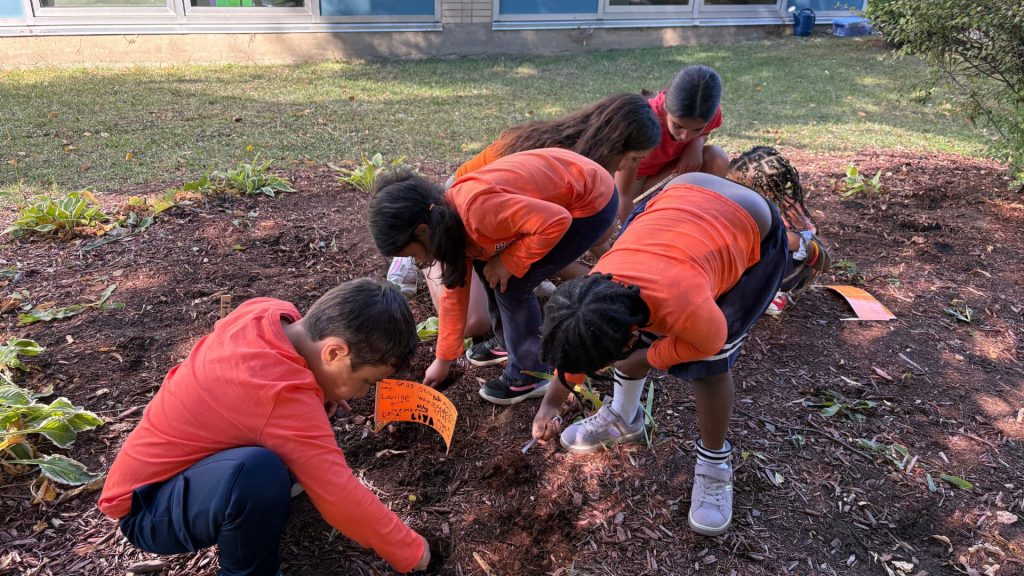 The tulip planting was connected to the National Day for Truth and Reconciliation, a time for Canadians to honour the survivors of residential schools, remember those who never returned home, and recognize the lasting impacts of the residential school system on Indigenous families and communities. By engaging in this project, students learned that reconciliation is not a one-day event. It is a responsibility we carry forward together, woven into everyday actions and choices.