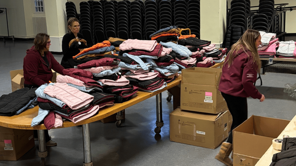 At Blessed Sacrament Parish, a small but mighty team of OCSB volunteers, including Louise Vincent, Jennifer Carroll, Karen Ladouceur, and Nancy Bachhuber, spent the morning sorting and packing the coats by size and school. The coats ranged from children’s size 4 to adult XL, ensuring that every student who needs one will receive a warm, comfortable fit.